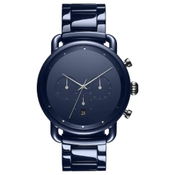 The stainless steel bracelet with fold-over clasp ensures secure, comfortable wear