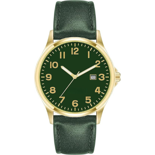 The Forest Green: Gold case with a deep green dial. Perfect for weekend getaways and outdoor vibes.